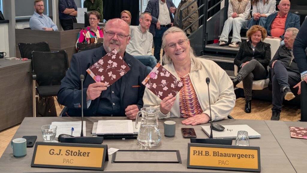 Soms duurt het best wel even voordat je resultaat van je werk ziet als raadslid. Maar deze beëdigingsvergadering was heel speciaal voor PAC. Want in de begrotingsvergadering van november 2024 had PAC voorgesteld dat de gemeente voortaan niet meer standaard bloemen als geschenk zou aanbieden. En hoewel de meeste fracties het voorstel toen veel te radicaal vonden, is de gemeentelijke organisatie toch doorgegaan op het ingeslagen pad. Het voorstel destijds was dat een duurzaam inkoopbeleid van de gemeente ook vertaald mag worden naar de geschenken die ze geeft, om het goede voorbeeld te geven. Bij deze vergadering was het zover. In plaats van een boeket bloemen, kregen alle raadsleden een fijne bon voor een boeket uit een pluktuin waar onbespoten bloemen groeien. Zo voelt succes: traag maar gestaag.